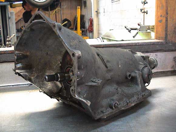 This is what the T/350 transmission looks like before we start to dismantle the unit and prepare it for the wash. The whole process from this stage to the final coat of paint will take three days while a standard unit can be built in one day.