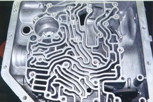 This photo basically shows the valve body after it has been completely stripped down and made ready for the machine work and valve body updates that are added to bring the unit up to scratch.