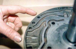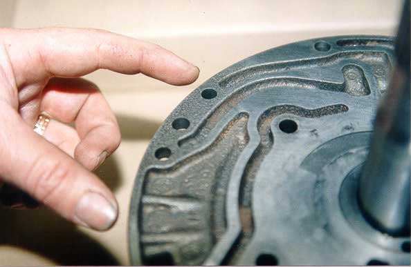This is a perfect example of a pump half that has been so poorly machined from the factory that the large portion shown between the fingers has been completely missed and not machined at all.