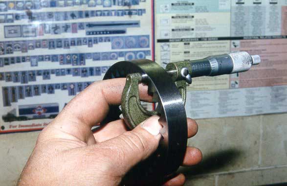 The width of the brand new inner and outer pump gears are checked for tolerance after being wet blocked flat.
